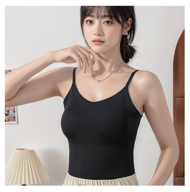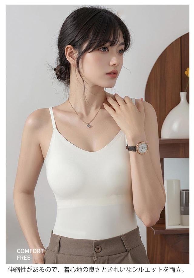| ・1枚持っておけば様々なシーンで重宝するカップ付きキャミソール。 ・ノンワイヤーでもしっかり大きな胸を支えます。 ・伸縮性があるので、着心地の良さときれいなシルエットを両立。 ・シンプルでも大人かわいいを演出するレイヤードに最適のインナートップス。 | |