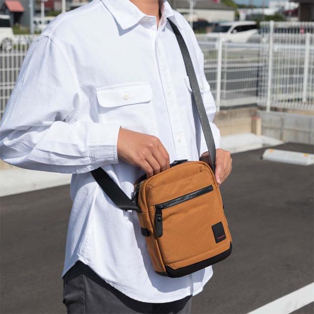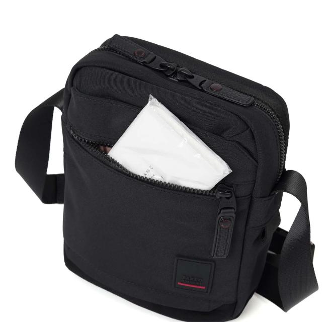 人気ブランド「タケオキクチ」のショルダーバッグ。本体生地には、ペットボトルから再生された環境配慮型ポリエステル生地を採用。弱撥水加工も施されており気軽にお使いいただけます。本体生地の他にも牛革や東レのマイクロファイバースエード生地を一部付属に使用し、異素材をコンビネーションでON・OFF兼用に仕上げたカジュアルシリーズです。