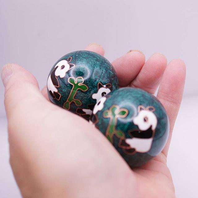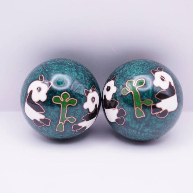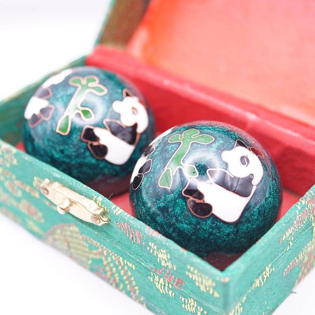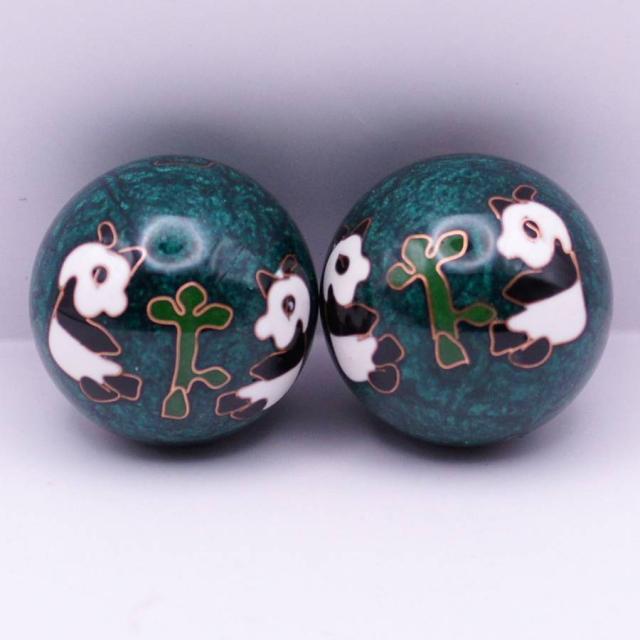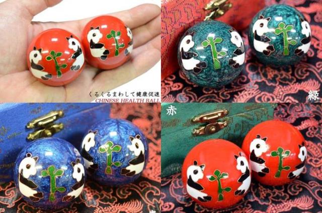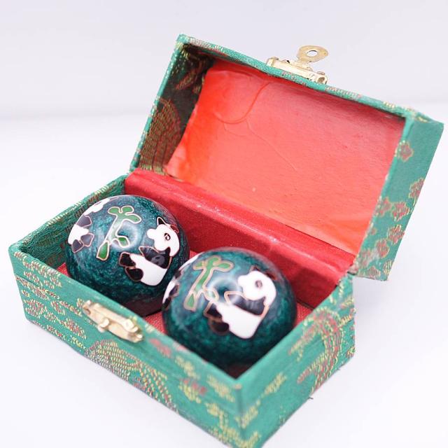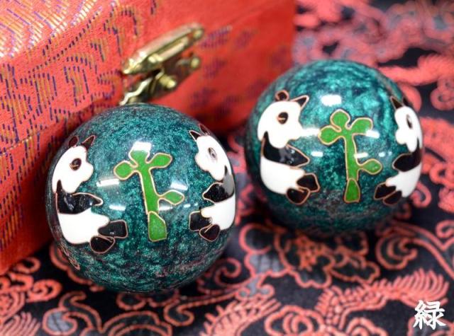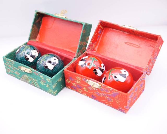 健身球(けんしんきゅう)は手のひらに集中する人体のつぼを刺激する中国伝統の健康グッズです。その歴史は古く、材質や形状なども様々なものがありますが、回転させるとカランカランと澄んだ金属音がします。七宝焼きで装飾をした美しい工芸品としての価値 もあります。健身球は保定三宝の一つとして、長い歴史が有ります。最初に発明されたのは明朝(1368-1644)です。時代と共に中国の職人たちによって常に改良が加えられてきました。当初は単純な円筒状の固まりだったのが、後世 の職人たちによって、中が空洞のボールに加工されました。そのおかげで取扱が容易になり、老若男女に関わらず使用できるようになりました。また、その空洞の中に小片を入れることによって、使用時に色々な音を出すように改良され、その音色はリラクゼーショーン効果を生じさせ健身球をさらに洗練された健康用具 へと押し上げました。