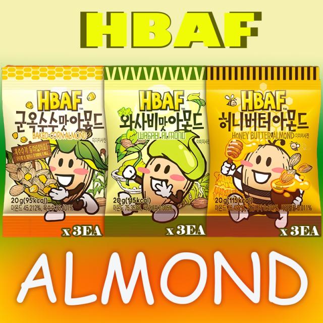 バラエティミックスアーモンド 3種(一種20g 3つずつ) ハニーバター・ワサビ・とうもろこし味 合計9袋
