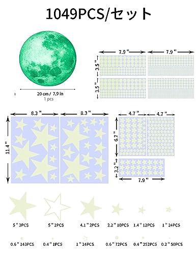 夜光シール 蓄光星+月+流星 1049点セット 光るシール 光るウォールステッカー 星シール 蓄光シール きらきら 光るシール窓ステッカー 星空 きらきら 部屋飾り雰囲気満点 部屋におしゃれ 天丼 部屋 装飾品 子供部屋用(緑)