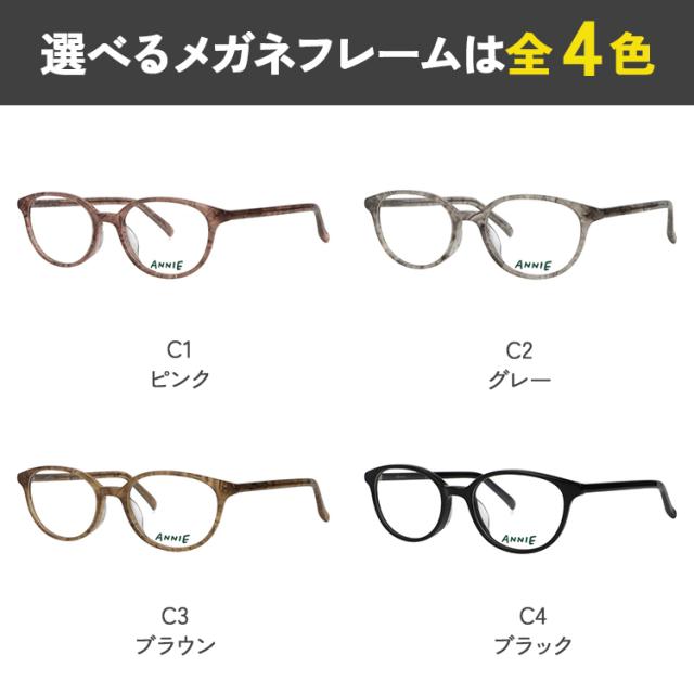 | <フレームカラー> C1 ピンク C2 グレー C3 ブラウン C4 ブラック | <素材> フレーム材質:プラスチック テンプル材質:プラスチック |