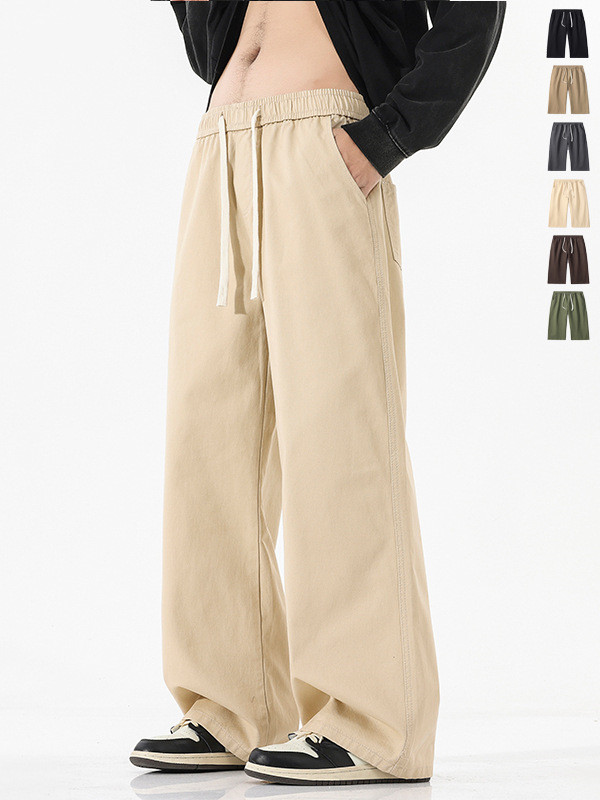 ワイドパンツ メンズ パンツ 春 綿100% ズボン 調整紐 ゆったり 日常 無地 スラックス ウエストゴム 大きいサイズ オールシーズン メンズ ボトムス パンツメンズ チノパン ストレートパンツ 春服 夏服 秋服 通気性