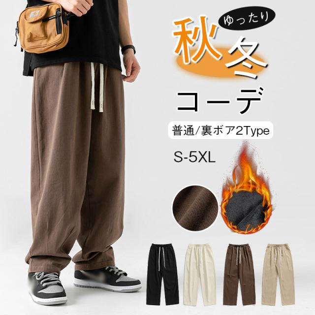 ワイドパンツ メンズ ゆったり 落ち感 スラックス 美シルエット 防寒 裏ボア 作業 ズボン 裏起毛 あったか ボトムス 暖パン カーゴパンツ INS