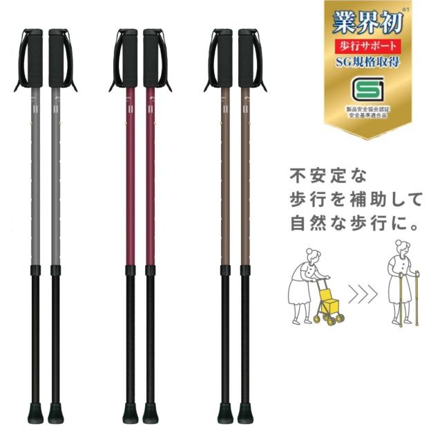 歩く力を高めたい方にぴったりなウォーキングポール。カラーはボルドー、ブラウン、グレーの3色展開です。