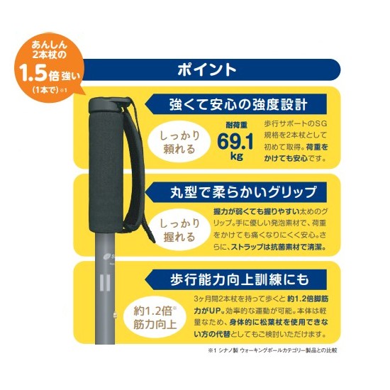 SINANO シナノしっかり2本杖(2本1組) 杖 ウォーキングポール 日本製 歩行サポート SG規格 介護 リハビリ 高齢者 シニア 耐荷重 ステッキ 自立歩行