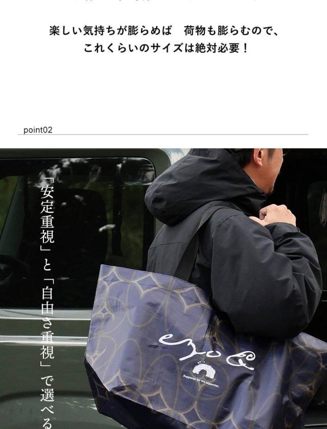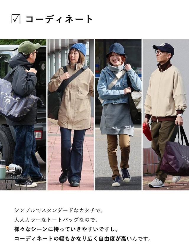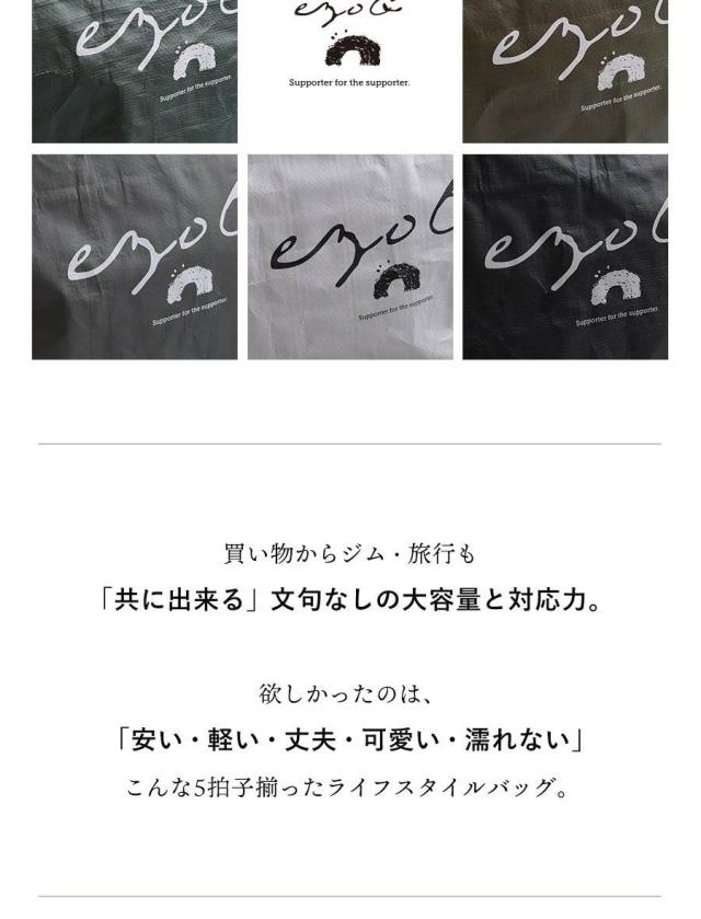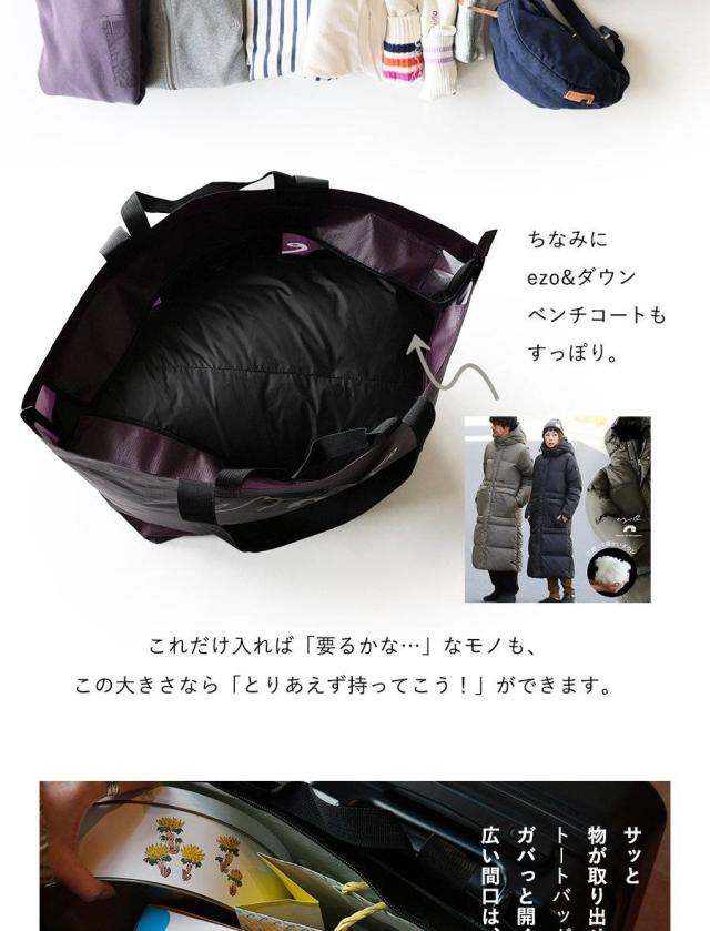 【メール便50】 トートバッグ ファスナー付き ショルダーバッグ ハンドバッグ エコバッグ カバン 肩掛け ロゴプリント 自立 撥水 大容量 55L 丈夫 軽量 旅行 一泊二日 スポーツ 運動 アウトドア キャンプ 収納 買い物バッグ パティ ezo& エゾト
