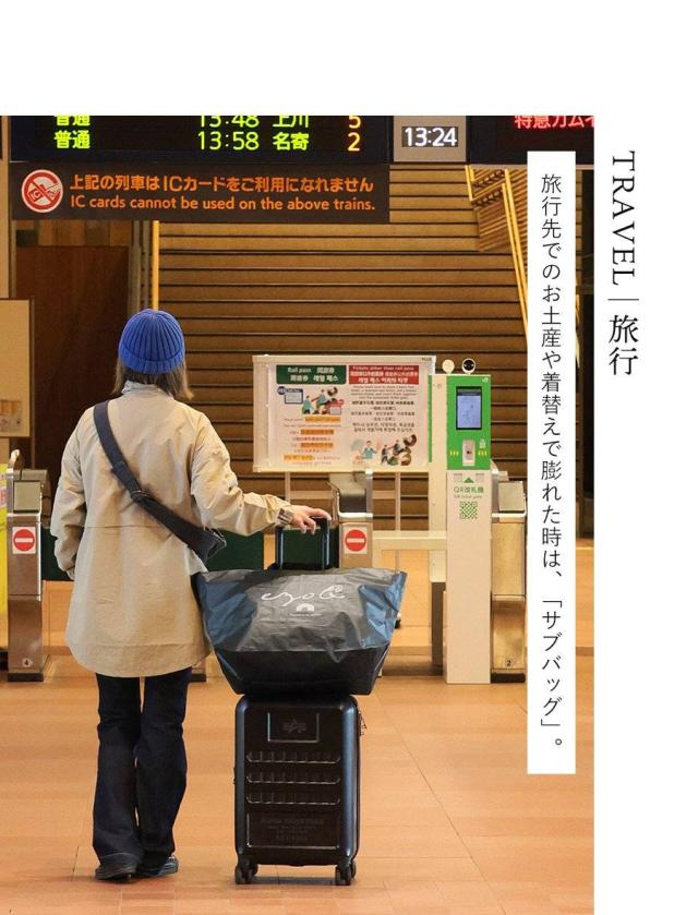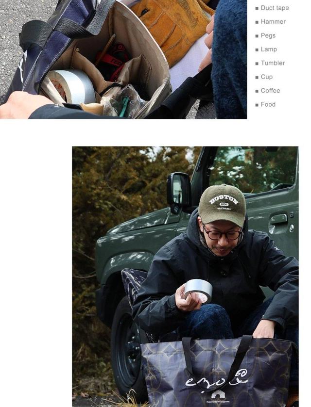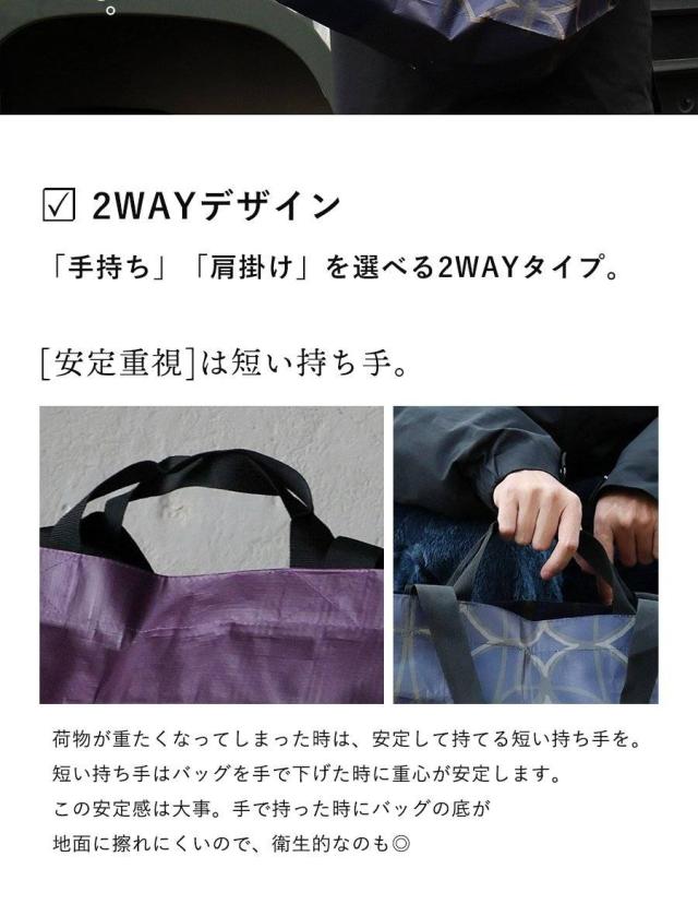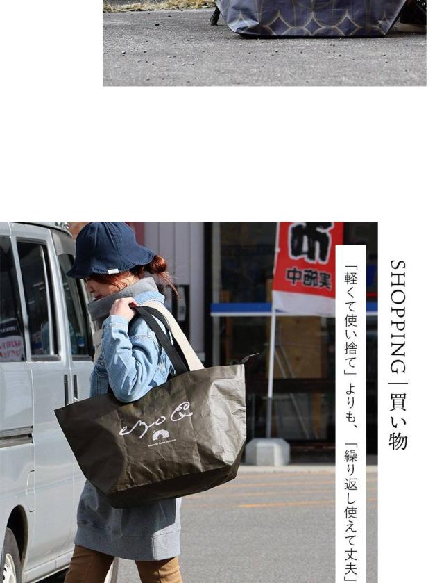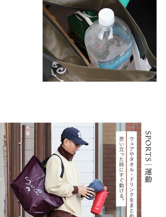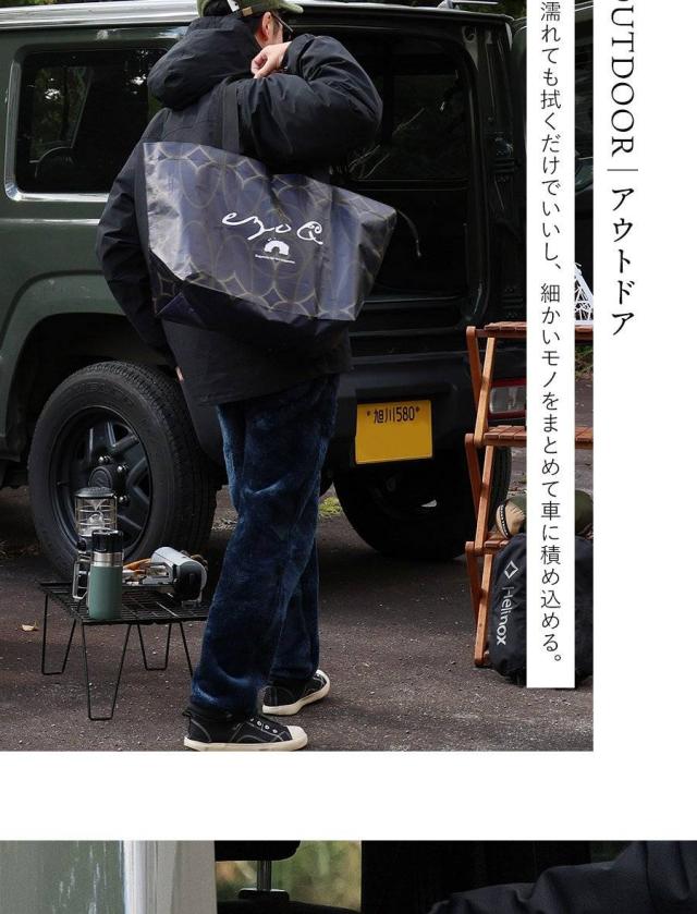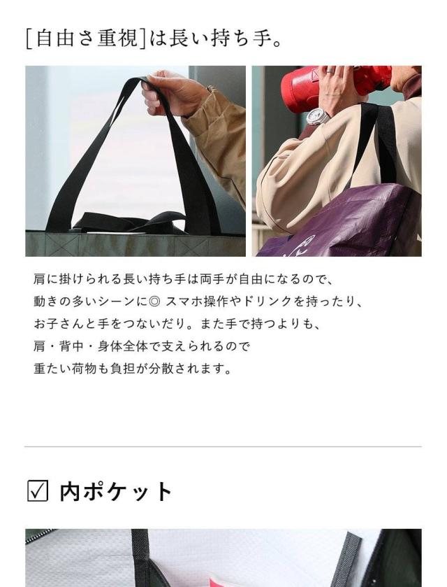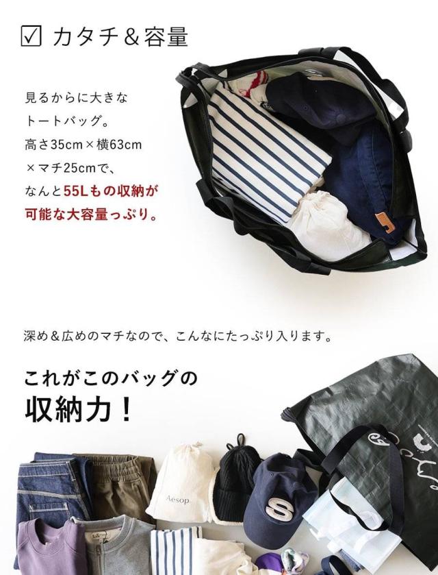 ・見るからに大きなトートバッグ。高さ35cm×横63cm×マチ25cmで、なんと55Lもの収納が可能な大容量っぷり。