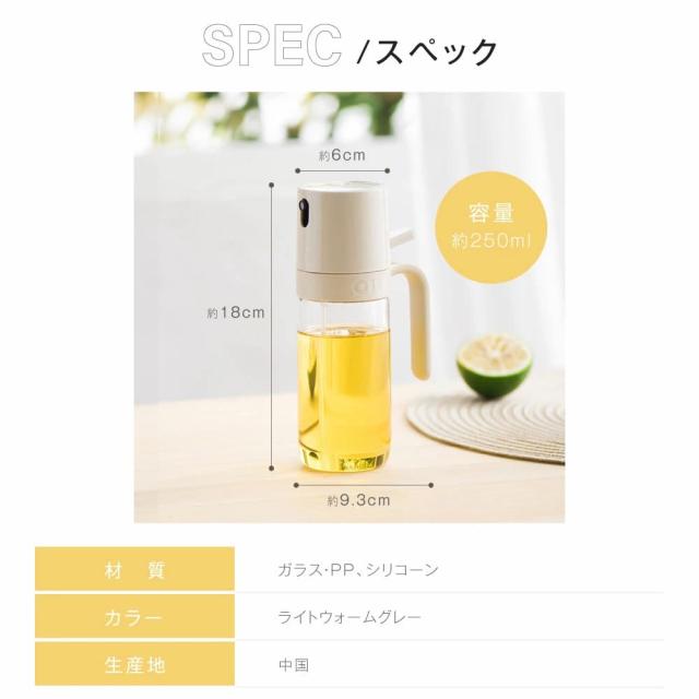 オイルスプレー 250ml オリーブオイル スプレー 霧吹き 調味料入れ 油いれ容器 透明 漏れ防止 オイルポット 醤油スプレー 料理用 耐熱ガラス サラダオイル キッチン用品