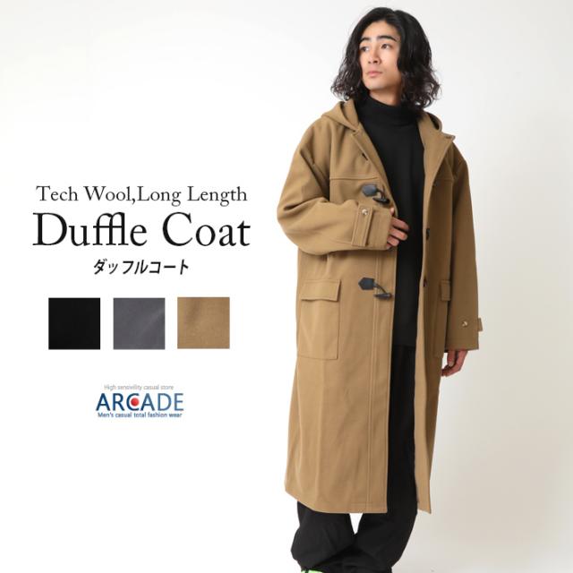 ダッフルコート メンズ 秋 新作 コート ロング丈 ロングコート ダッフルコート アウター シンプル オーバーコート メンズファッション 無地 ARCADE