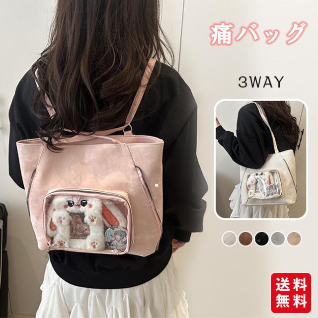 痛バッグ リュックバッグ ショルダー ハンドバッグ 3WAY おしゃれ かわいい 推し活バッグ シンプル 可愛い オシャレ クリアポケット