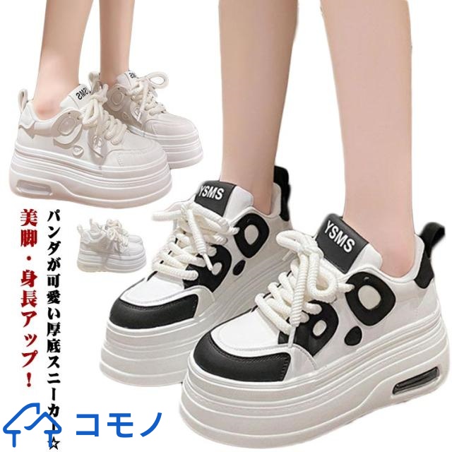 | パンダが可愛い厚底スニーカー☆美脚・身長アップ! 内側には通気性の良い素材を使用し、通気性と吸汗性に優れたスニーカーです。 ホワイトの靴は季節を選ばず使えるため、春夏秋冬を問わず幅広く活躍します。 身長のアップ!厚底スニーカーを履くことで、少しでも身長を高く見せることができます。多くの人にとって自信を持って歩くための手段となります。 厚底スニーカーにはクッション性や衝撃吸収性が備わっています。歩く際の足への負担を減らし、快適な履き心地を提供します。 | |