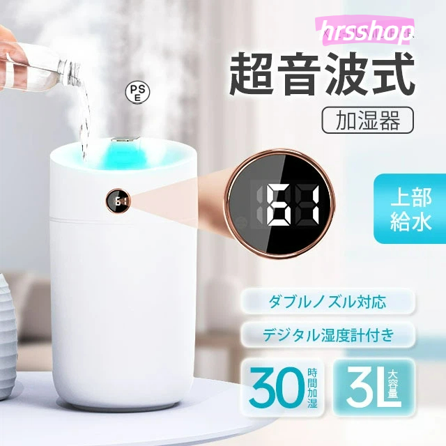 ダブルノズル 加湿器 超音波式 大容量 3L 卓上 空気加湿機 上部給水 USB充電 3段階調節 自動湿度調節 焚き防止節電 省エネ 寝室 オフィス