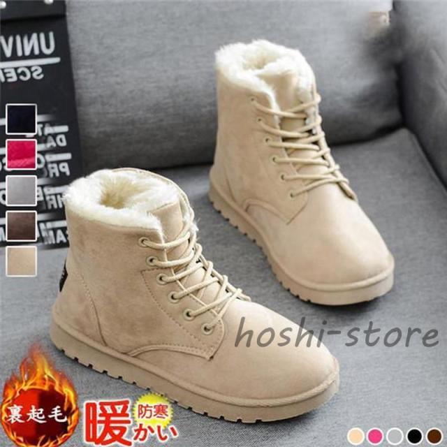 ムートンブーツ スノーブーツ 雪靴 裏起毛 スノーシューズ ファー レディース ブーツ 防寒 裏ボア モコモコ アンクルブーツ カジュアル 冬 保温 編み上げ