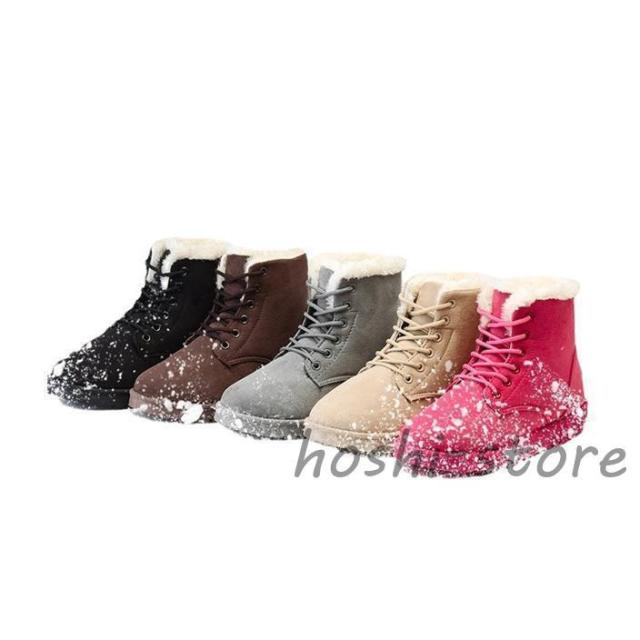 【爆買】【送料無料】ムートンブーツ スノーブーツ 雪靴 裏起毛 スノーシューズ ファー レディース ブーツ 防寒 裏ボア モコモコ アンクルブーツ カジュアル 冬 保温 編み上げ