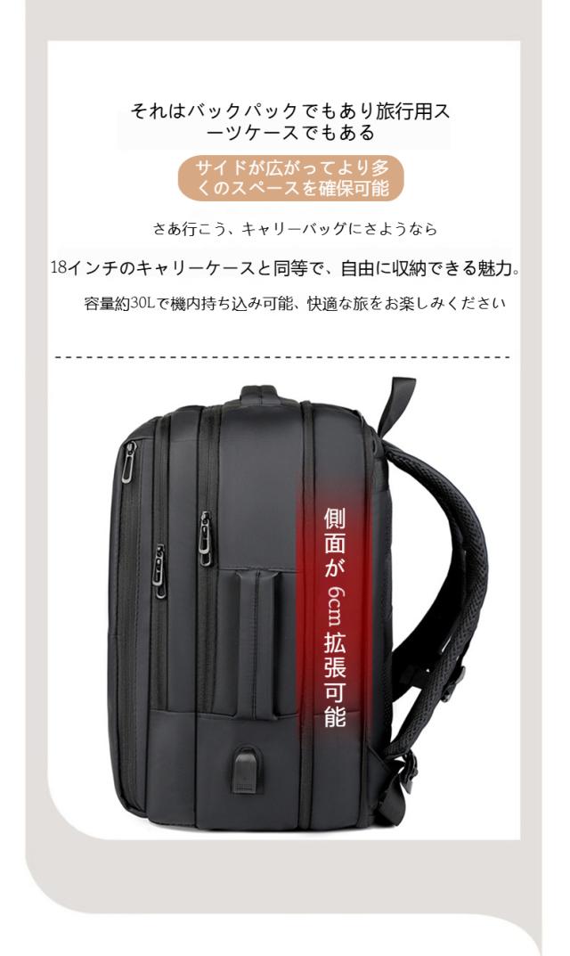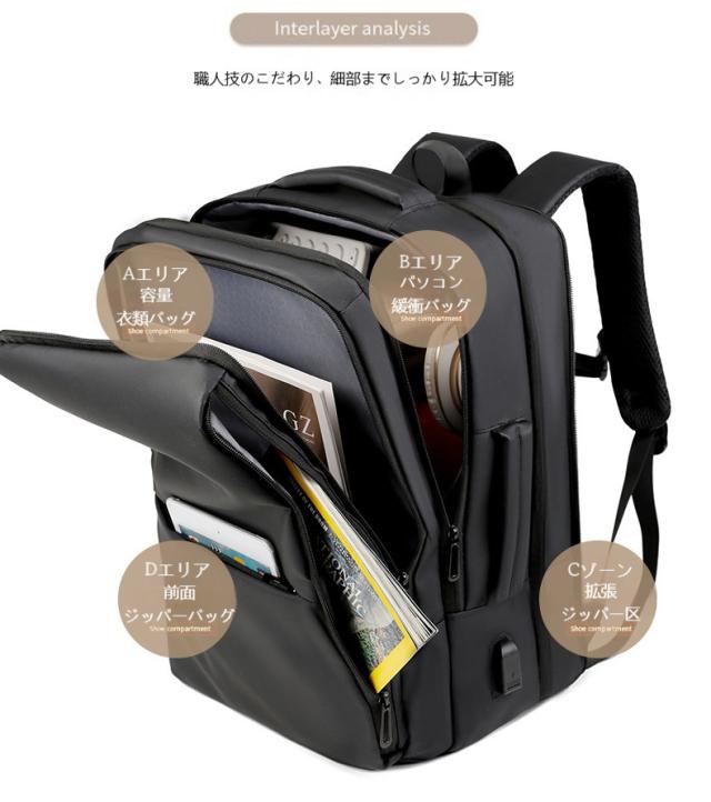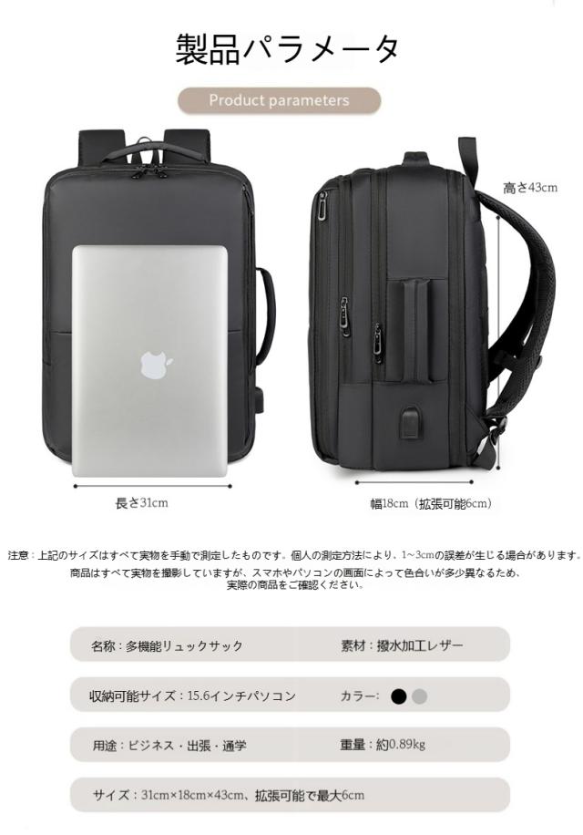 メンズリュック、ビジネスバッグ、PCバッグ、出張用、旅行用、防水バッグ、拡張式、軽量、大容量、通勤リュック、USBポート付き、15.6インチ対応、シンプルデザイン、撥水、耐摩耗、おしゃれ、バックパック