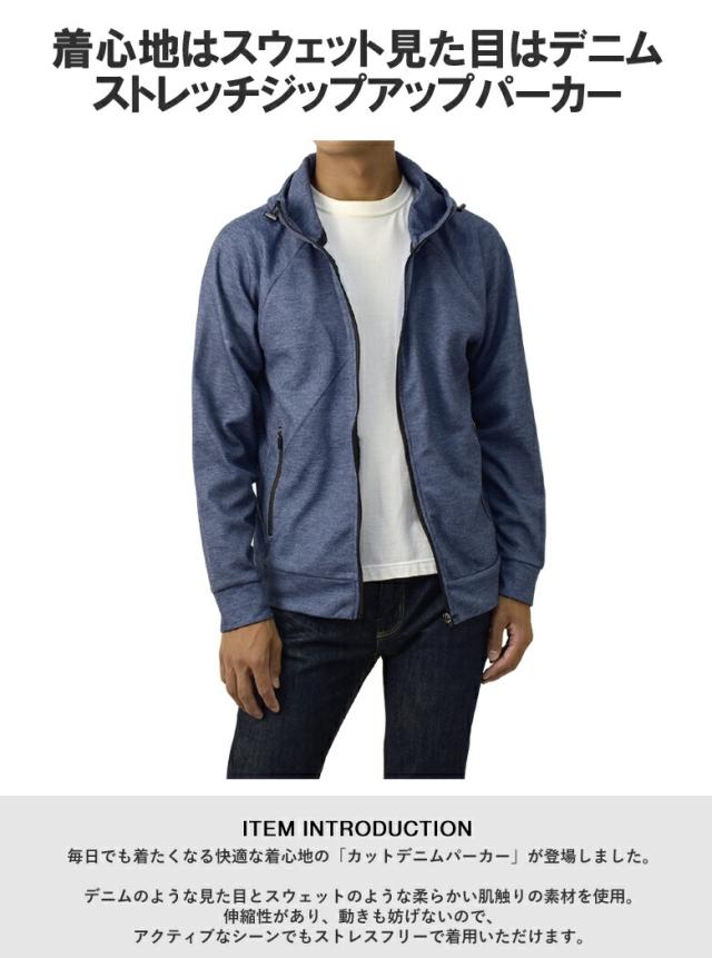 送料無料☆着心地はスウェット、見た目はデニム! ストレッチジップアップパーカー。