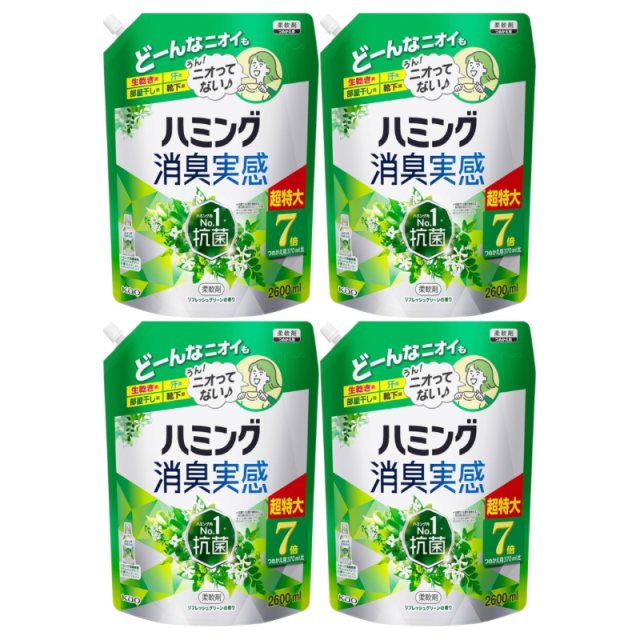 ハミング消臭実感 リフレッシュグリーン 詰め替え 2600ml 4袋セット 柔軟剤 大容量