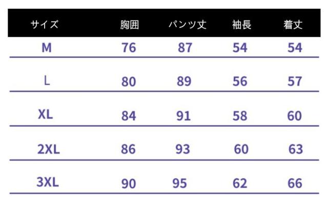 | サイズについての説明 | 【M】おすすめ体重40-47kg 【L】おすすめ体重47-55kg 【XL】おすすめ体重55-62kg 【2XL】おすすめ体重62-70kg 【3XL】おすすめ体重70-77kg ※サイズ表の実寸法は商品によって1-3cm程度の誤差がある場合がございます。 |