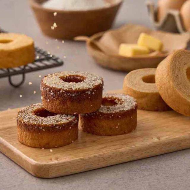 北海道で製造された発酵バター、アーモンドプードルを使用した、コクと芳醇な香りの発酵バターバームクーヘンと、大粒のざらめを焦がしたジャリジャリとした食感が楽しいブリュレバームクーヘン。