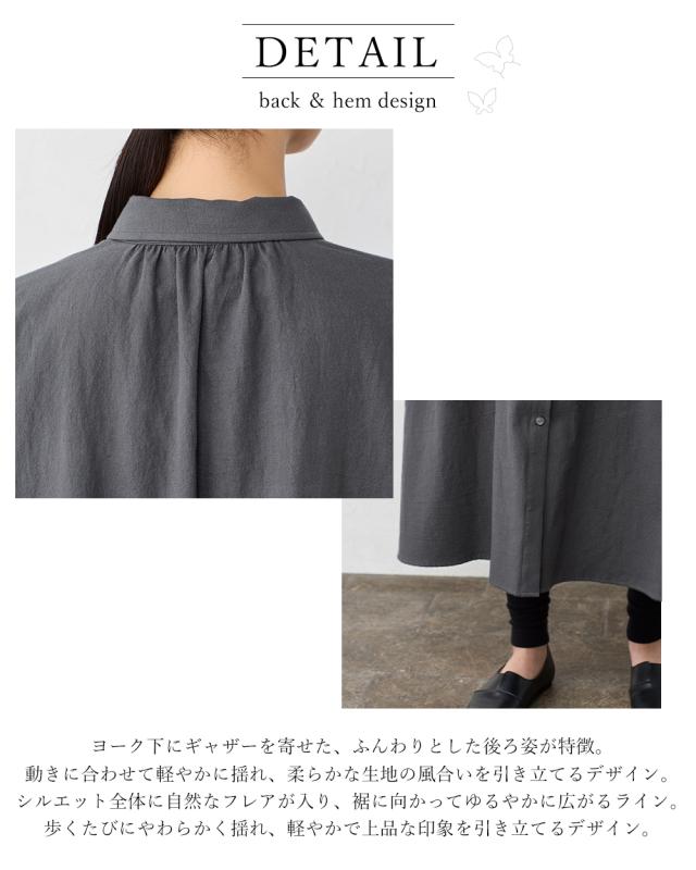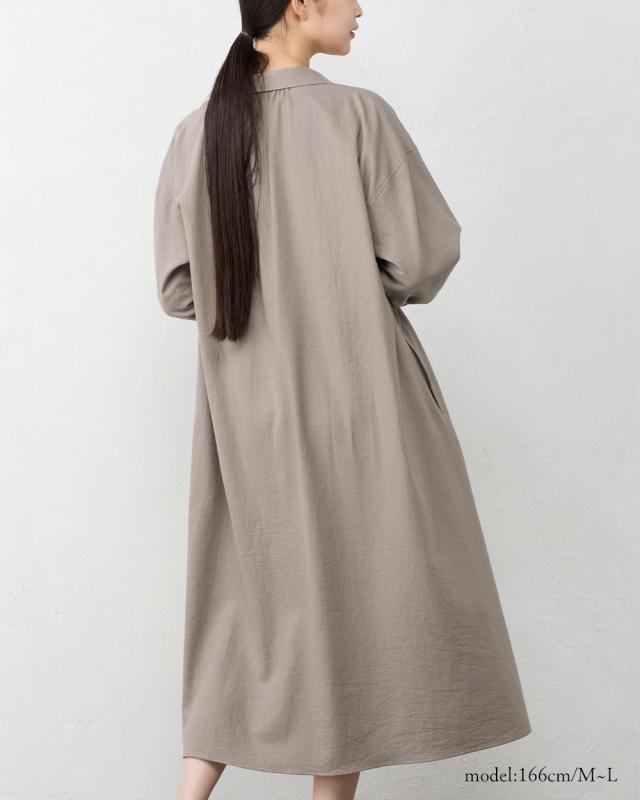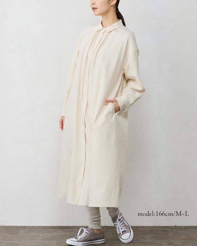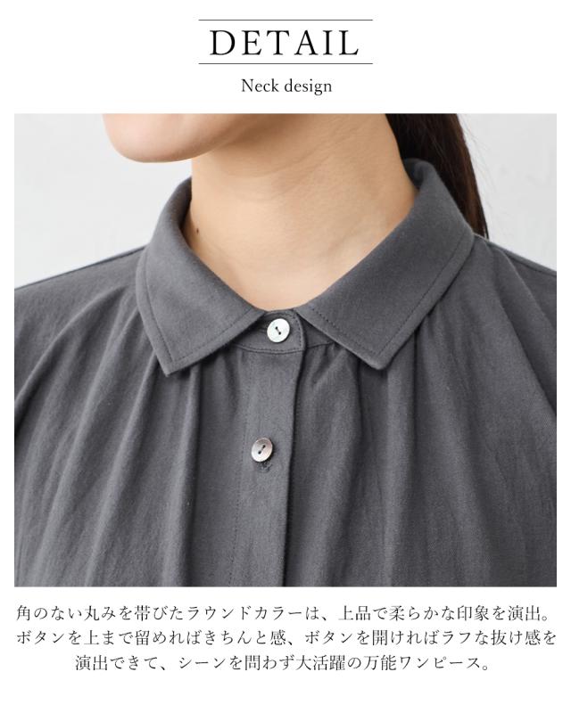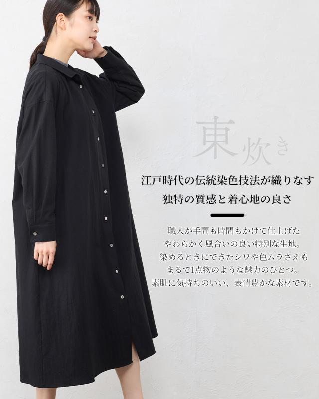 丁寧に炊き上げた東炊きコットンビエラを使用した、やわらかなシャツワンピース。
