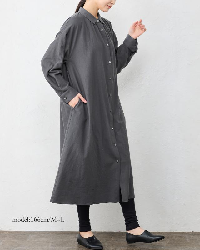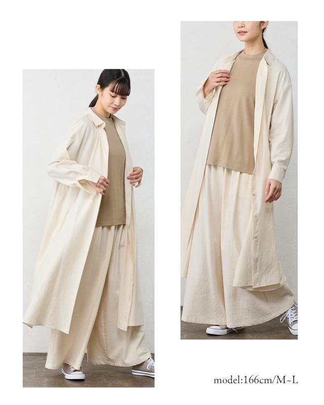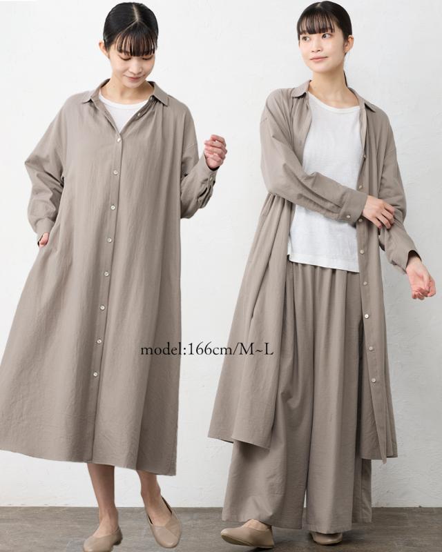 【日本製】東炊き コットンビエラ シャツワンピース 綿100% レディース ナチュラル シンプル ロングワンピース ロングワンピ ロング丈 ミモレ丈 Aライン フレア 長袖 ボタン 無地 羽織 フリーサイズ 大きいサイズ ゆったり
