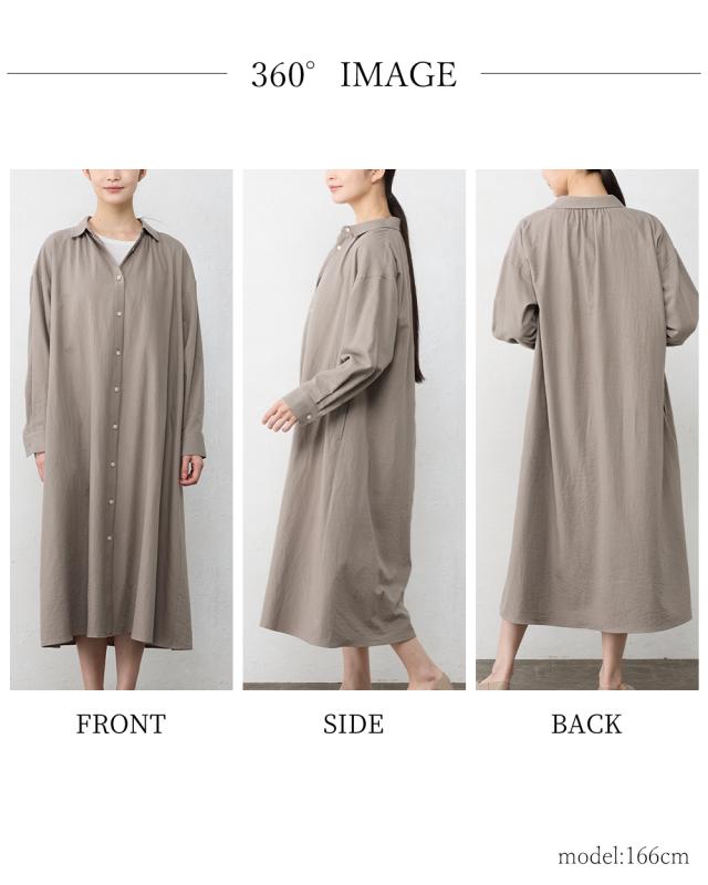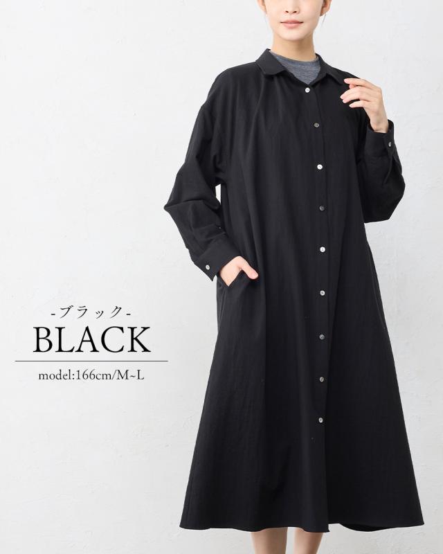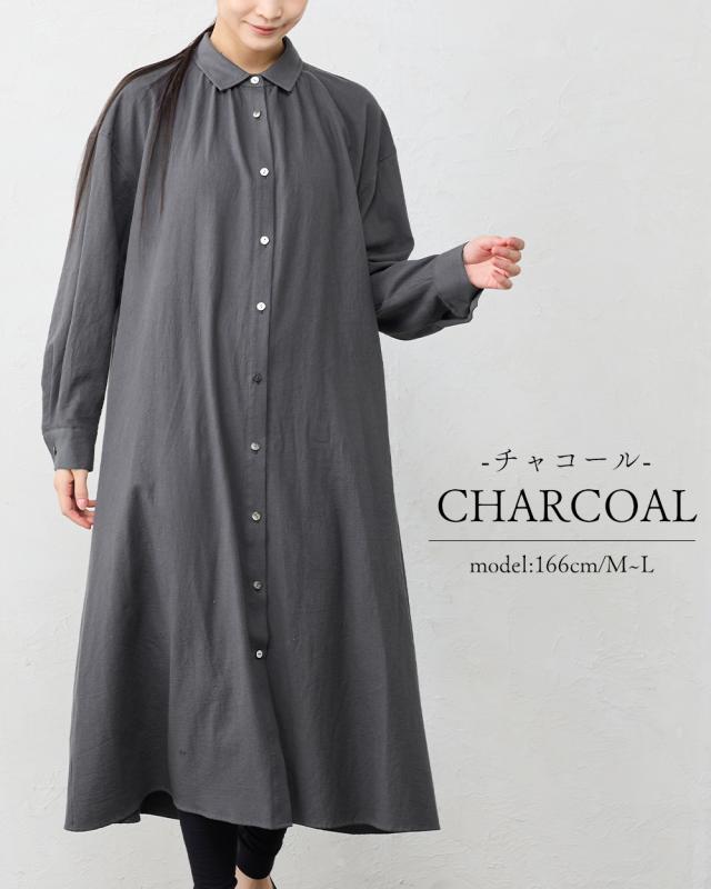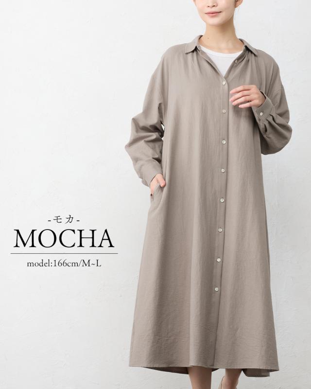 ワンピース ワンピ ロングワンピース シャツワンピース シャツワンピ フレアワンピース Aラインワンピース 羽織り 春夏アイテム 秋冬アイテム レディース オフ モカ チャコール ブラック 白 茶 黒 灰 体型カバー シンプル 無地 カジュアル ナチュラル 大人 イージーケア 洗える ウォッシャブル 通勤 ママ フリーサイズ東炊き コットン100% 綿100% コットン 綿 コットンビエラ