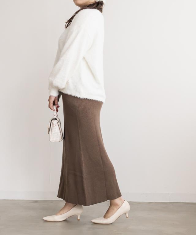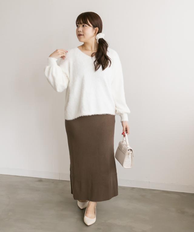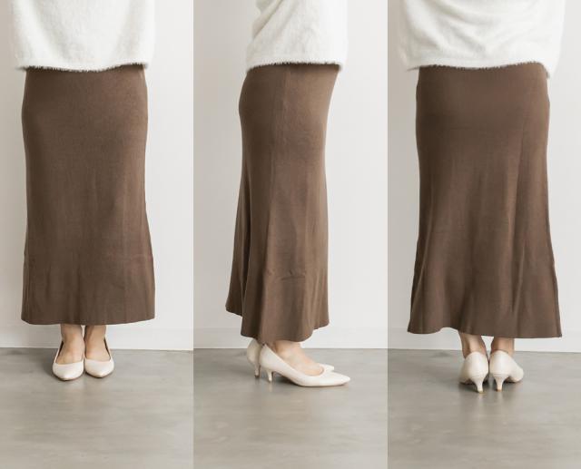 | 3Lサイズを着用してちょうどいいサイズ感でした。ウエストゴムで窮屈感が無く、ニットなのでスカート自体も良く伸びて動きやすいです◎すっきりとしたシルエットなので、ボリュームのあるトップスやペプラムのアイテムとも相性抜群です!シンプルだけど色味が大人っぽく、合わせるだけでこなれ感がでるお洒落なアイテムです!季節初めから取り入れると、秋冬のムードが楽しめるような鮮度の出る1着で、ニットとセットで着用するのもお勧めです! |