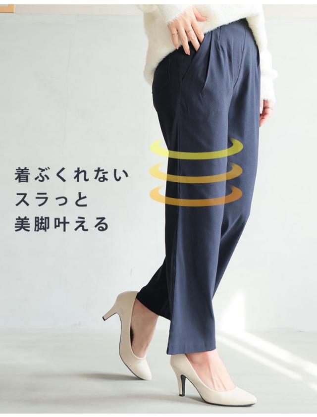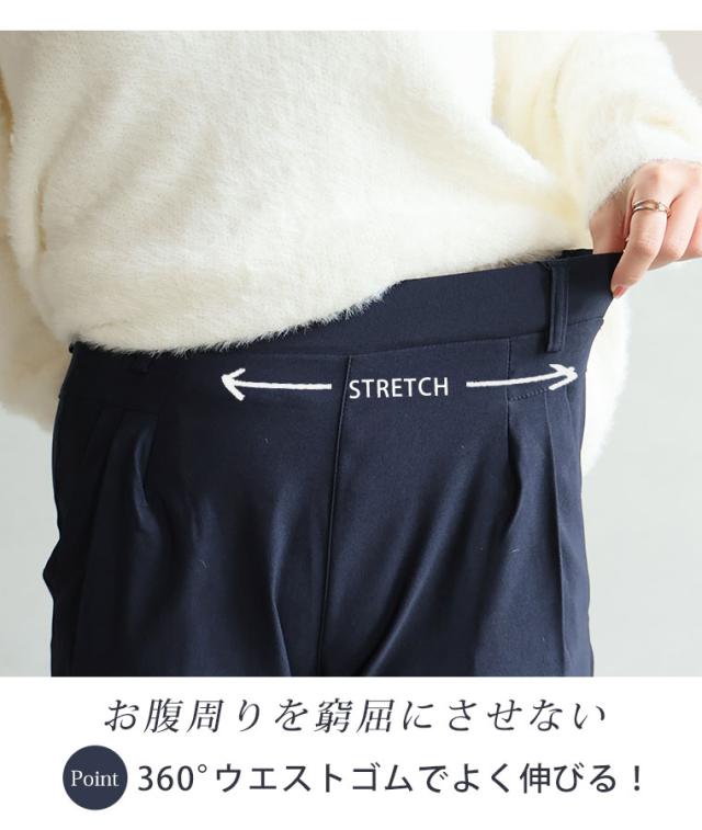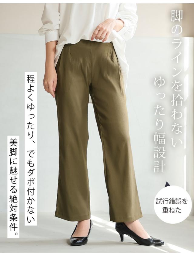 ぐんぐん伸びるストレッチ素材苦しくないウエスト総ゴムストレートパンツ
