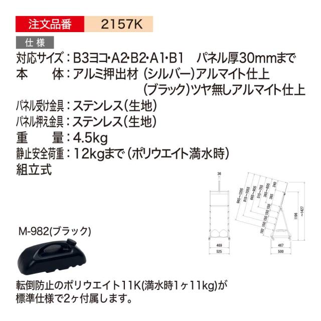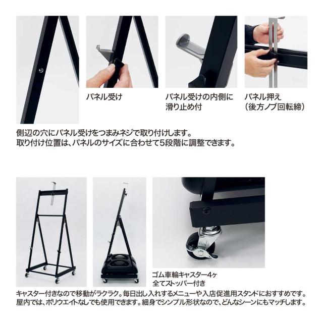 パネル用スタンド 屋外・屋内両用 B3~B1 ポリウエイト(M-982 ブラック)11K 2ヶ付属 K(ブラック) キャスター付き 組立式 飲食店 商業施設 メニュー キャンペーン告知 ポスター掲示 BELK ベルク almode(アルモード) 2157