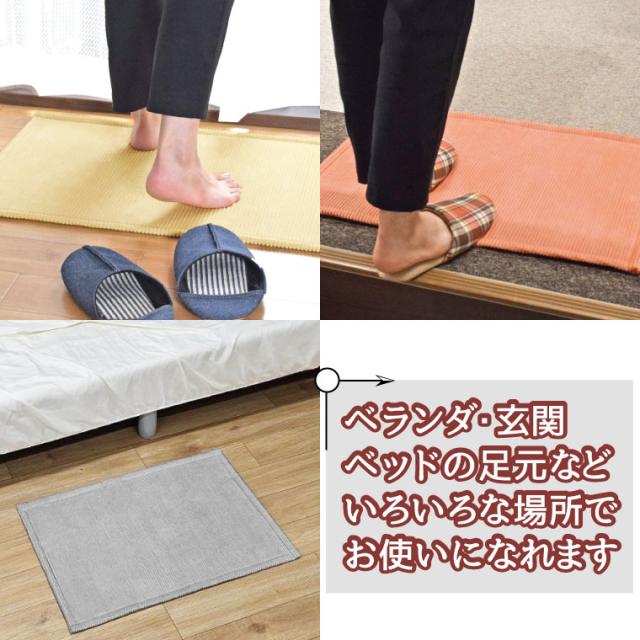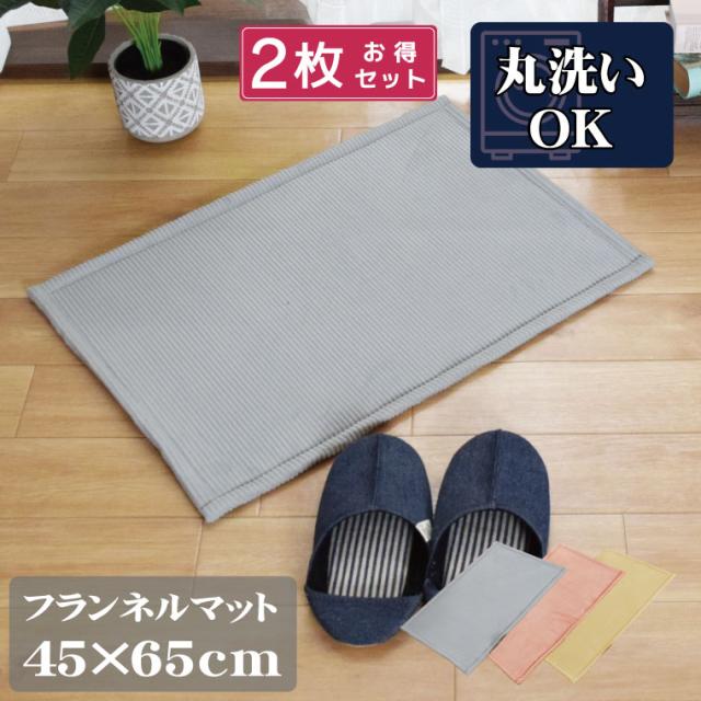 マット 洗える 2枚組 おしゃれ 無地 滑り止め 室内 玄関 リビング ベッド 45×65cm シンプル かわいい フランネル グレー オレンジ イエロー 黄色