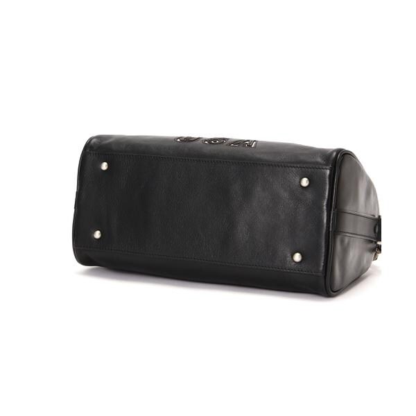 ブランドオリジナルのチャーム、底面には底鋲を打ち、手持ち以外の使用用途に合わせ、斜め掛け用にショルダーベルトも付属。