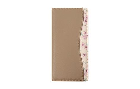 落ち着いた色合いにワンポイントの花柄がオシャレなブックタイプケース