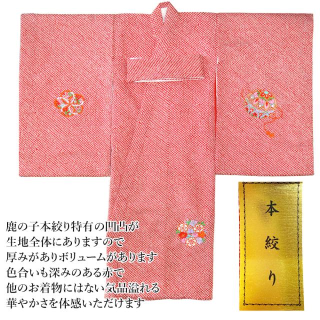 日本製 着物 長襦袢付 総絞り