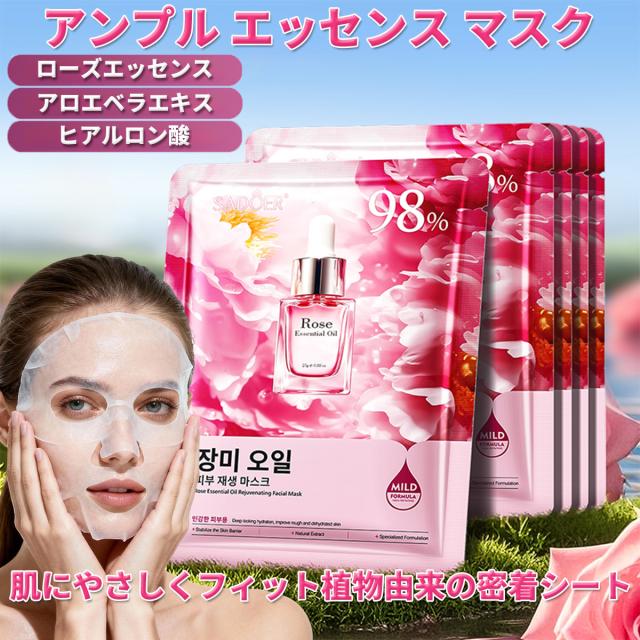[10枚セット]アンプル エッセンス マスク 大容量、フェイスパック 個包装【ローズエッセンス】活性成分配合、デイリーパック、 鎮静パック、美容マスク、極薄シルク生地、肌にやさしい密着シート、角質ケア 顔、毎日パック10枚入り