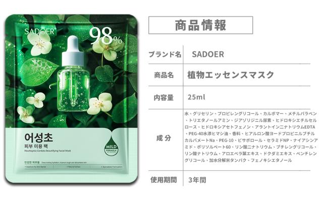 ◎【肌荒れ パック】こちらは植物エッセンスのアンプル美容液マスクです。このマスクはパラベン・鉱物油・エタノール・合成香料・合成着色料・紫外線吸収剤・シリコンを一切使用しておらず、敏感肌の方でも安心してご使用いただけます。やさしい処方で、肌トラブルを抱える方にもおすすめです。日常のスキンケアを簡単にできながら、必要な保湿と美肌ケアもしっかりと叶えます。