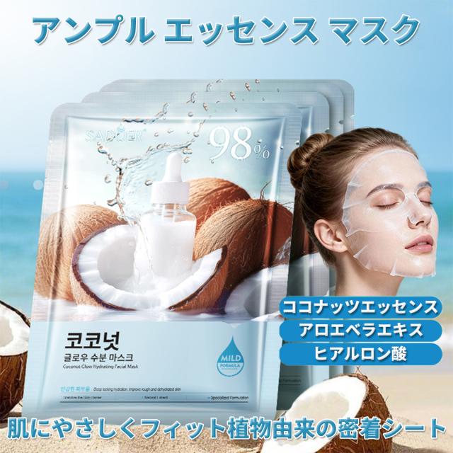 [10枚セット]アンプル エッセンス フェイスマスク 個包装、フェイスパック 個包装【ココナッツエッセンス】シートマスク 個包装、マスクパック、デイリーパック、美容マスク、極薄シルク生地、ピタッと密着、角質ケア 顔、毎日パック、保湿パック