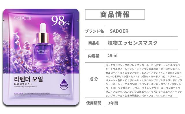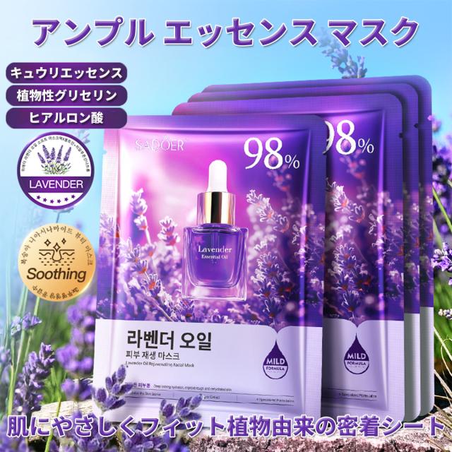 [10枚セット]アンプル エッセンス マスク 大容量、フェイスパック 個包装【ラベンダーエッセンス】活性成分配合、鎮静パック、ビタミン パック、美容マスク、極薄シルク生地、肌にやさしい密着シート、角質ケア 顔、毎日パック 10枚入り