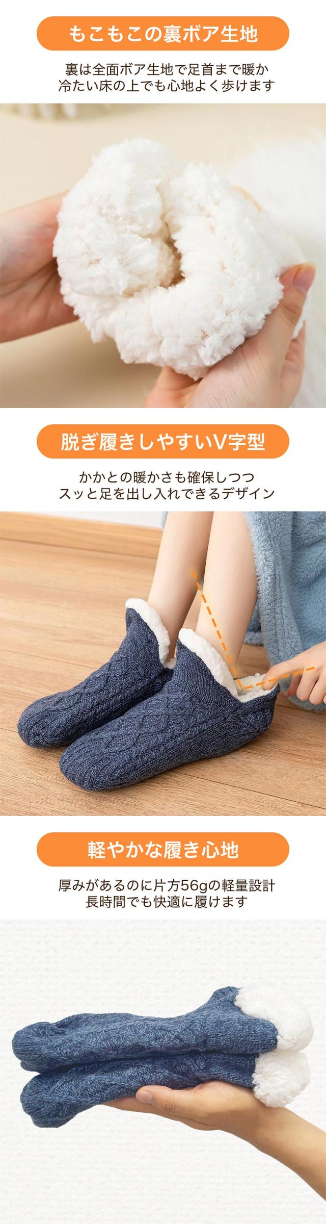 裏生地が全面ボアで足裏までふんわり保温。くつろぎ時間がより快適になります。