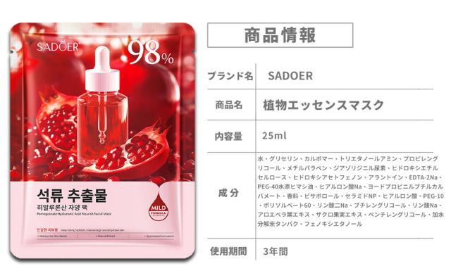 [10枚セット]アンプル エッセンス マスク 大容量、フェイスパック 個包装【ザクロエッセンス】活性成分配合、 ビタミン パック、 鎮静パック、美容液パック、美容マスク、極薄シルク生地、ピタッと密着、角質ケア 顔、毎日パック10枚入り