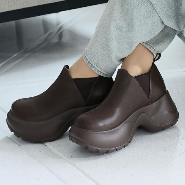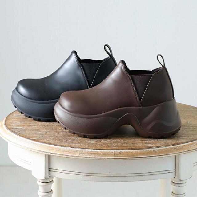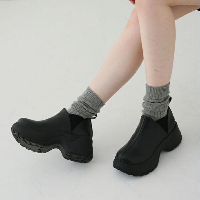 すっきりとしたバランスの良いアンクル丈が新鮮なスリッポンブーツ。