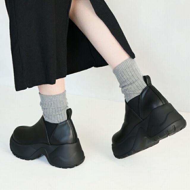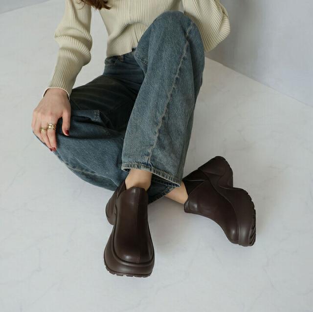 ・ぽってりとしたトゥ×厚底でシンプルなコーデに抜け感をプラス。