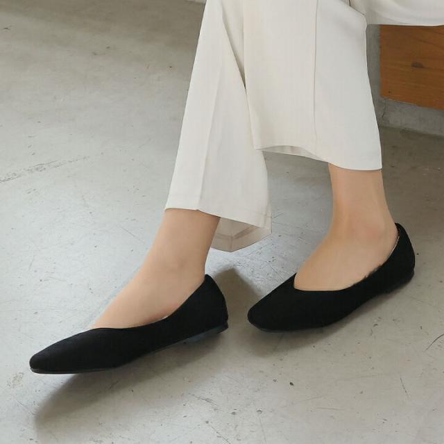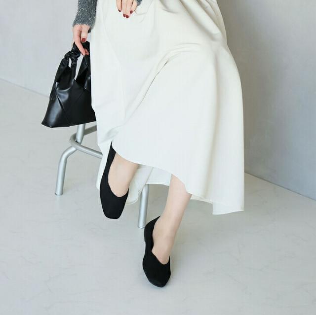 ・スクエアトゥ×Vカットで履くだけで大人のこなれ感を演出。