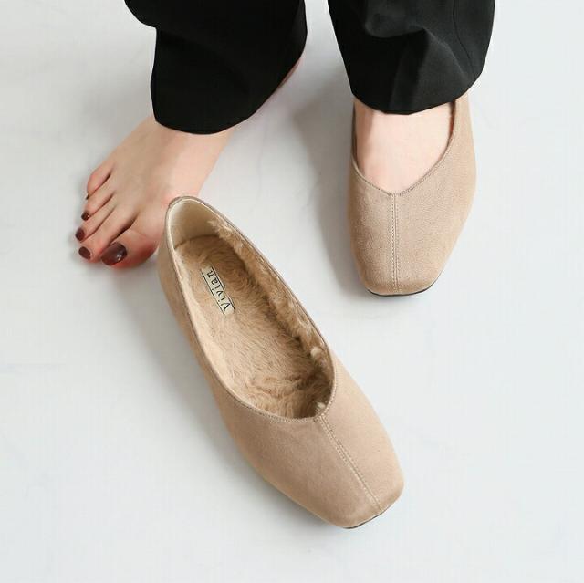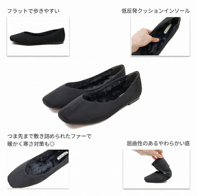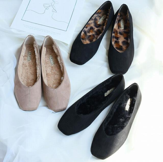 ・もふもふのインナーファーで足元ぽかぽかフラットシューズ!