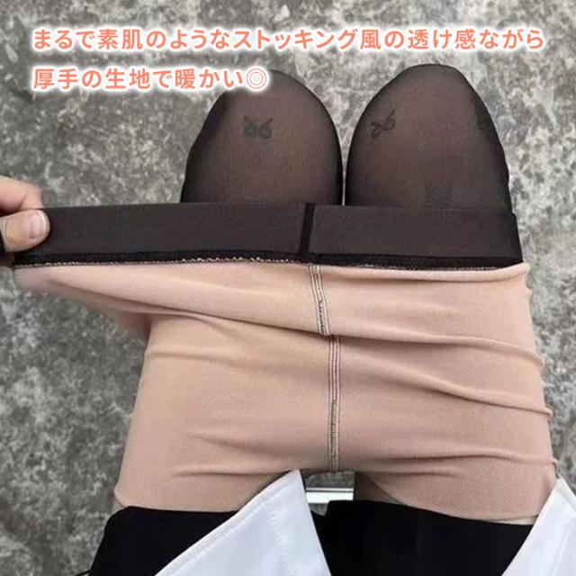 まるで素肌のようなストッキング風の透け感ながら、厚手の生地で暖かい◎
