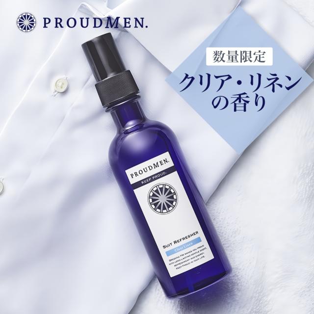 数量限定 PROUDMEN プラウドメン スーツリフレッシャーCL クリア・リネンの香り 200ml 消臭スプレー スーツ 衣類 衣類用 消臭剤 メンズコスメ オフィス 香り フレグランスミスト