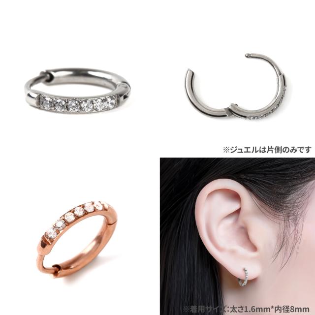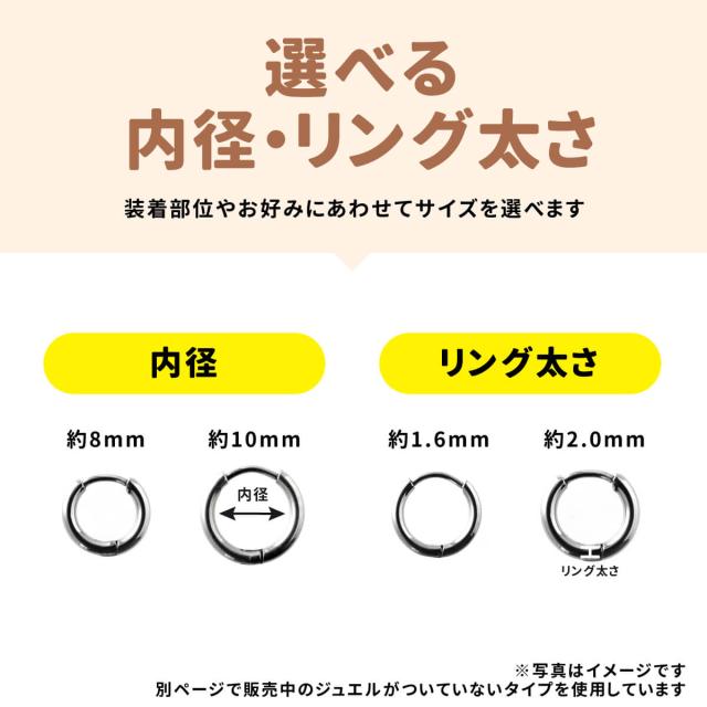 サージカルステンレス,ジルコニア,ジュエル素材のフープピアスです(金属アレルギー対応)。