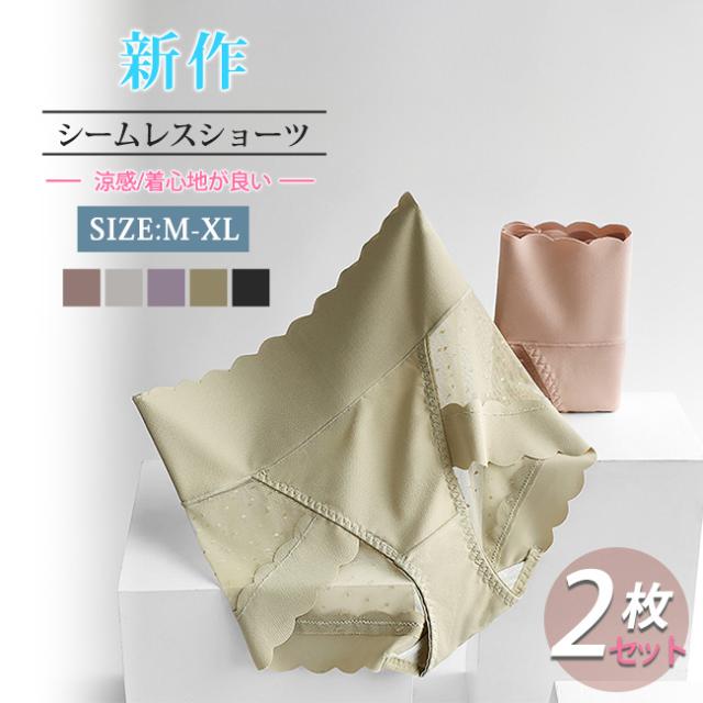 2枚セット ショーツ レディース ハイウエスト シームレス ショーツ 深ばき レース 下着 パンツ 女性 美形 セクシー腹部下着 通気性 肌ざわり良い