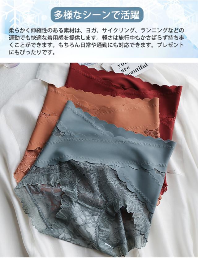 2枚セット ショーツ レディース レース 深め パンツ シームレスショーツ 補正下着 ハイウエスト 超可愛い お腹まで包む 下着 深履き 女性用 美尻ショーツ 柔らか 通気性 伸縮性 抗菌防臭
