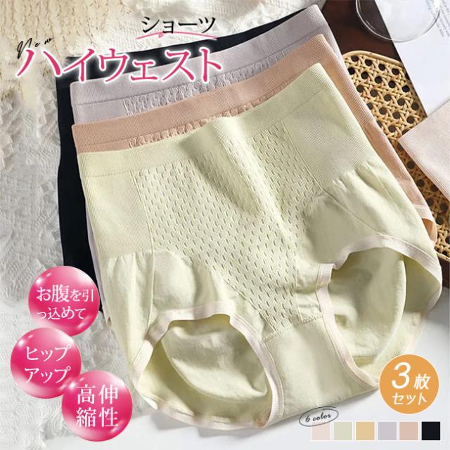 【3枚セット】ハイウェストショーツ レディース 下着 無縫製 深ばき 美尻ショーツ 温活ショーツ 妊活 お腹まで包む ヒップ立体縫製 冷え対策 産後 補正下着 伸縮性